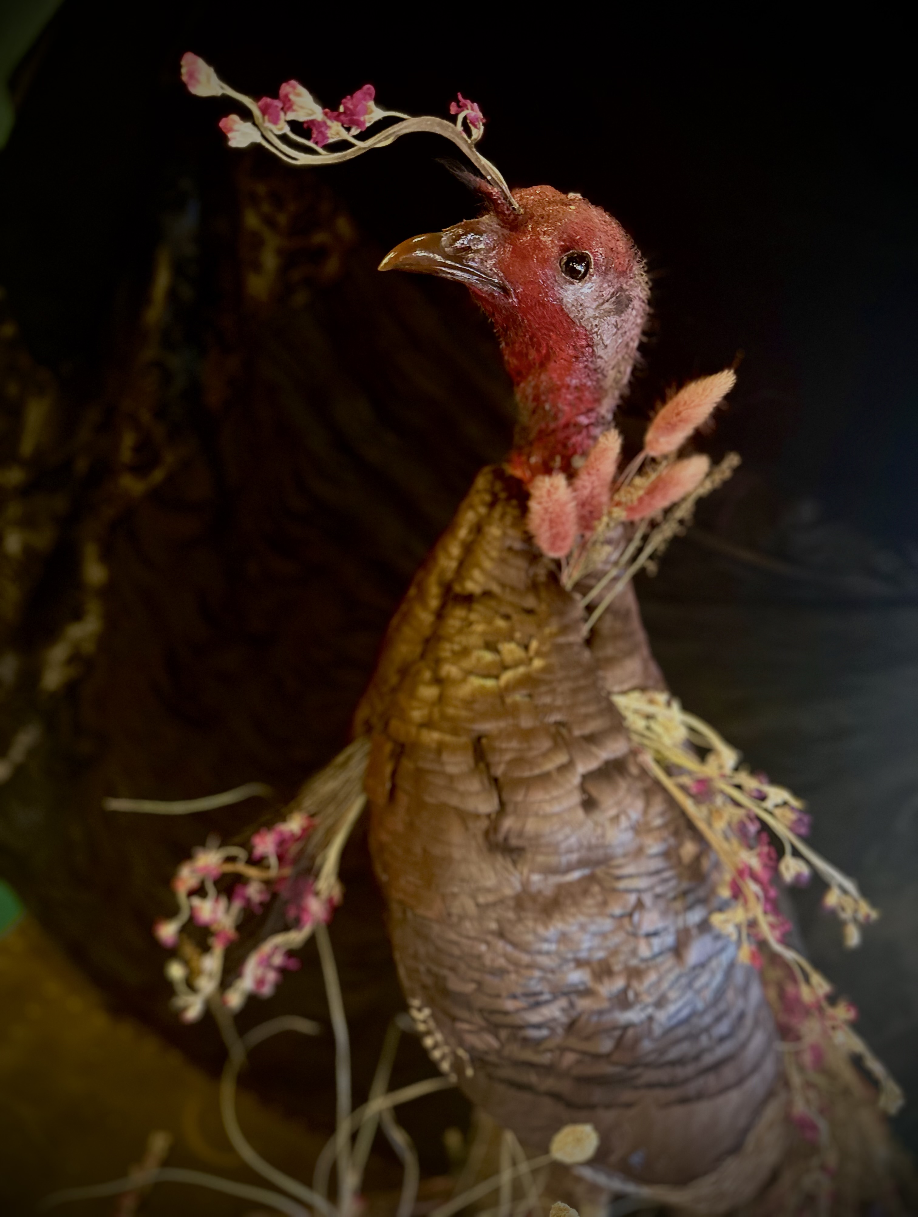 Mounted specimens and cleaned bone. Foxes, birds, fish, and things with interesting skulls. Natural history on the wall.